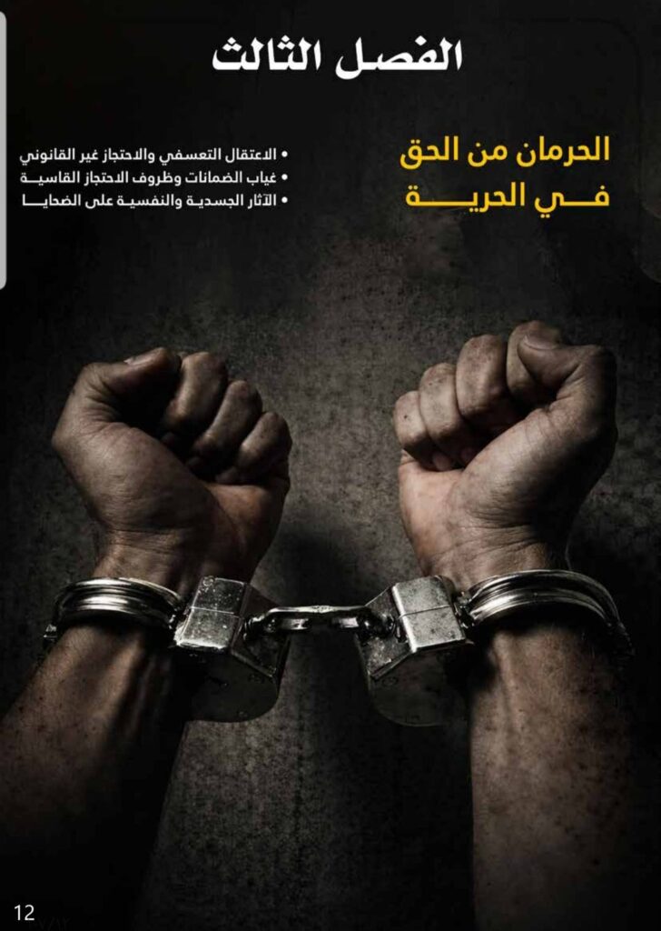 ووثّق التقرير 6,417 حالة اعتقال تعسفي خلال العام، تصدّرت ميليشيا الحوثي النسبة الأعلى مع تصاعد وتيرة الانتهاكات بشكل لافت خلال شهر سبتمبر، حيث نفذت 4,785 حالة اختطاف واحتجاز تعسفي في المناطق الشمالية، من بينها 217 طفلاً جرى احتجازهم خارج إطار قانون الأحداث، وبعضهم أودِعوا في سجون مخصصة للبالغين.